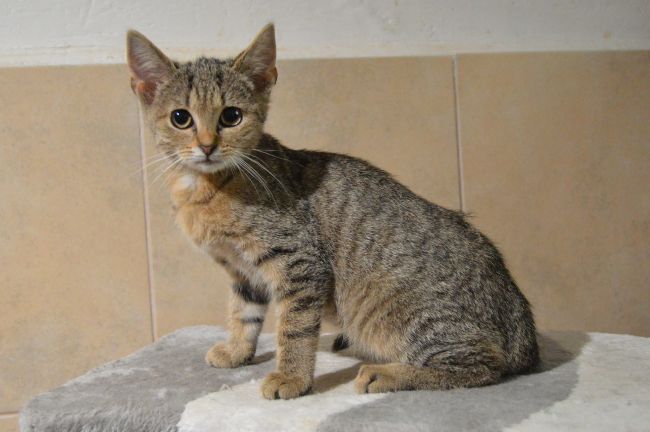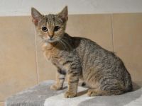 Informace: Nalezenc, přijat bez matky, K lidem lehce nedůvěřivý, hravé,akční kotě. Má osvojeny hygienické návyky (kočkolit). Vhodný pouze k chovu uvnitř domu či bytu.
